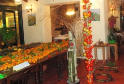 In the courtyard there is the Venetian 14th-century water mill, and next to that, the inn that offered its hospitality to the tired travellers. The old inn has been transformed into a marvelous interior with a decoration that is renewed every day with materials derived from nature: fresh and dried flowers, fruits, and vegetables (tomatoes, artichokes, huge colored pumpkins, sculpted watermelons, and more). The courtyard is a paradise filled with trees, some of which are perennial, scented plants and flowers.