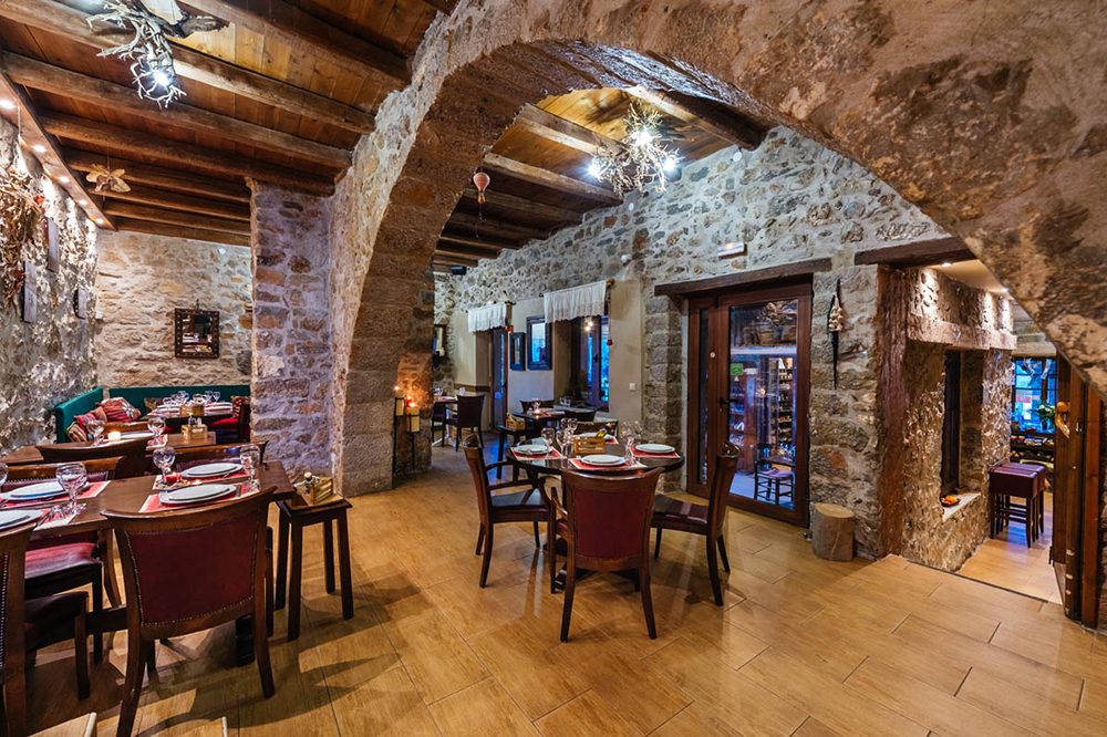 A traditionally built place became the restaurant located in Agios Konstantinos in the Lasithi Plateau, where you can enjoy Cretan delights on demand. A dining room for those who seek exceptionally good food in a warm and cozy place. Vilaeti is one of the best restaurants in Lasithi and features meat roasted in a traditional oven operating on wood, 'Antikristo' lamb, meat fried on coals, and food cooked in a pot, all prepared with organic vegetables and meat from the local market. Enjoy authentic Cretan cuisine in a traditional dining room of Lasithi. Testing the wine selection from Crete in Vilaeti Restaurant will be a unique experience.