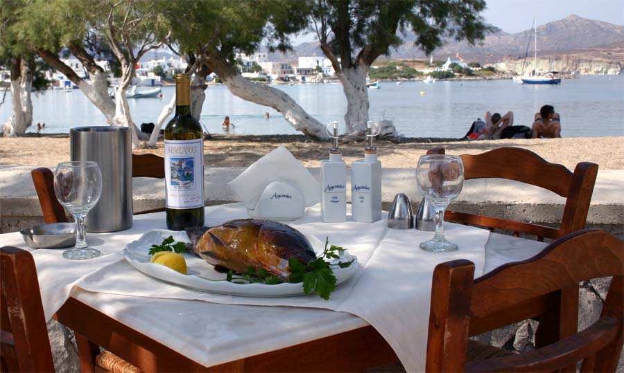 One of the most popular areas of Mylos you will discover the Restaurant Armenaki located in the center of Pollonia. With fresh vegetables and fish you will enjoy the Greek Cuisine in a very friendly environment. Every day serves fresh fish and seafood with the best prices in town in a very warm and friendly atmosphere.