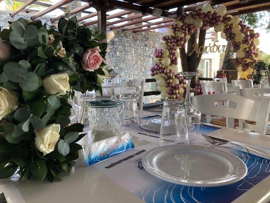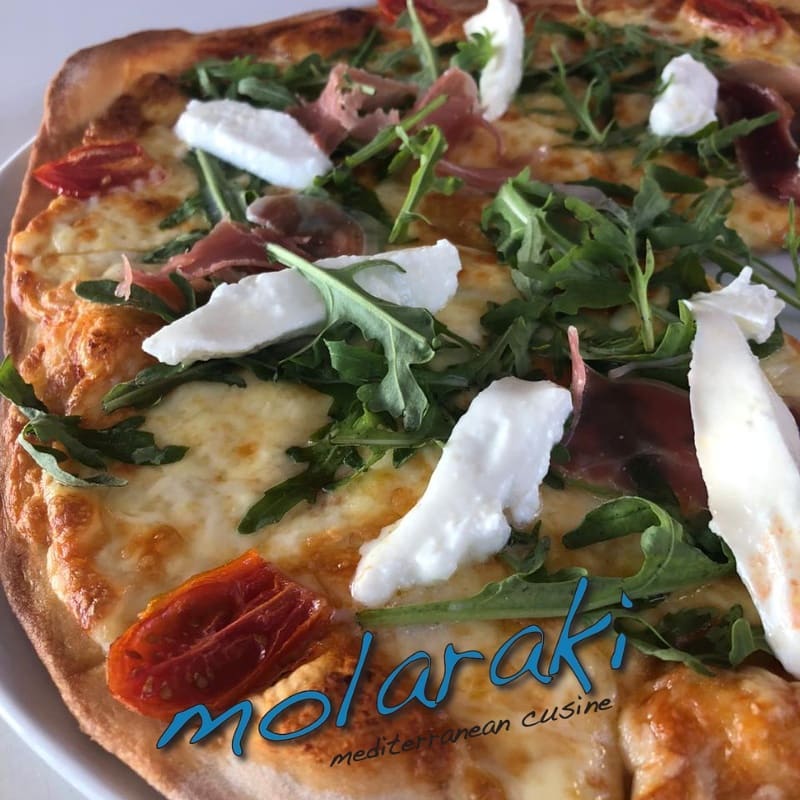 It is named after the traditional term “molaraki,” which means “very small harbor,” due to its location in the Tourlos area on Mykonos Island, where in the past there was a small harbor for fishing boats. Today at the same location you will find the modern New Port and Marina of Mykonos, where the cruise ships, motor yachts, and sailing yachts are hosted during their stay on the island. The menu in Molaraki Restaurant is rich, and you will try all traditional Greek and Mediterranean dishes prepared with love and passion.