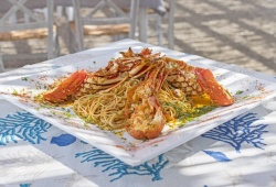 If you love Greek gastronomy, there is a place in Astypalea with a beautiful and windless beach and Astypalean cuisine made with love and passion. Aykroboli Restaurant serves fresh traditional fish and seafood every day in a very friendly environment, in a beautifully landscaped area, by the sea, with wonderful views and music.
