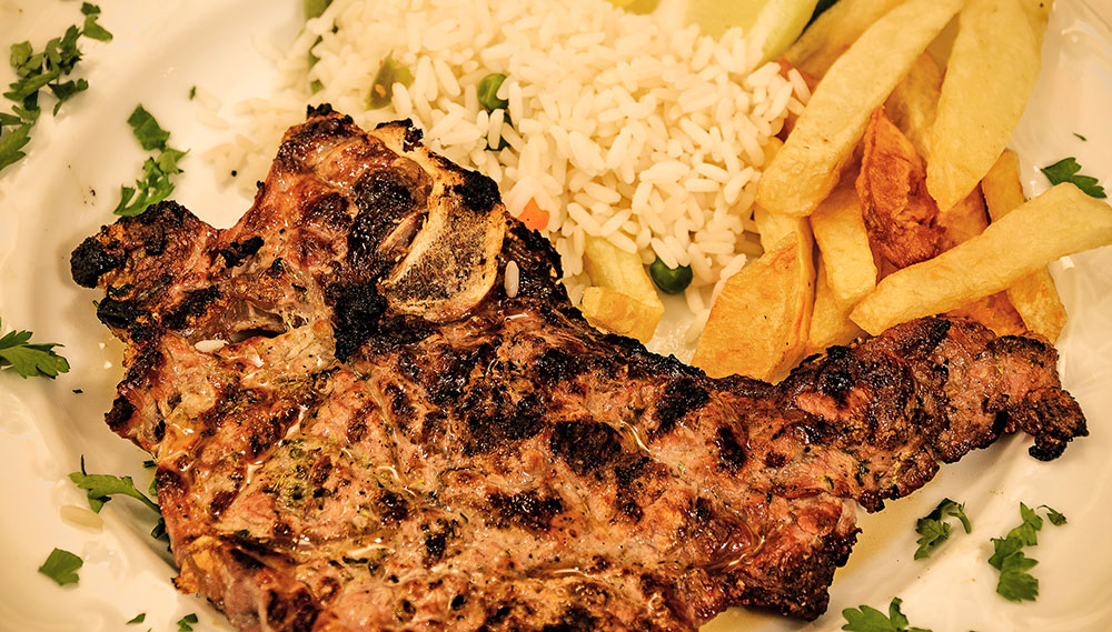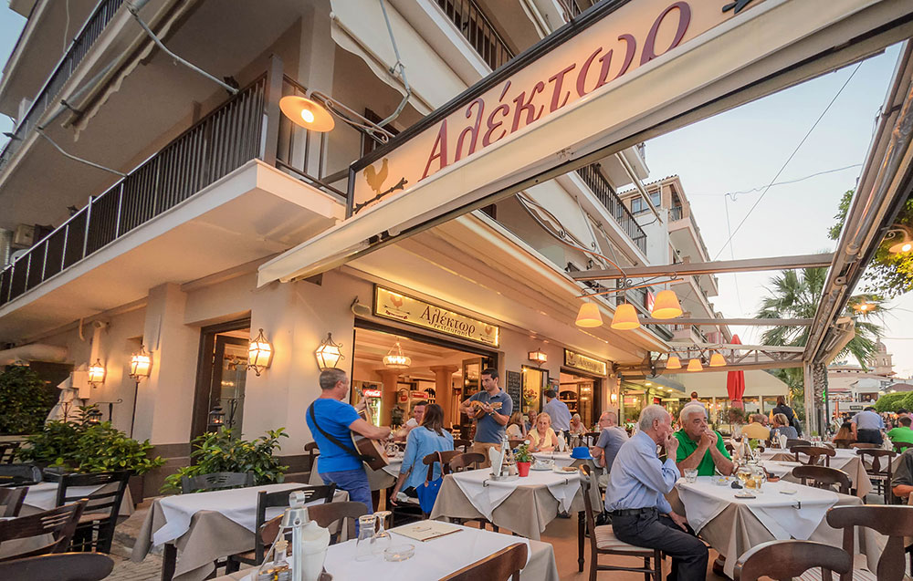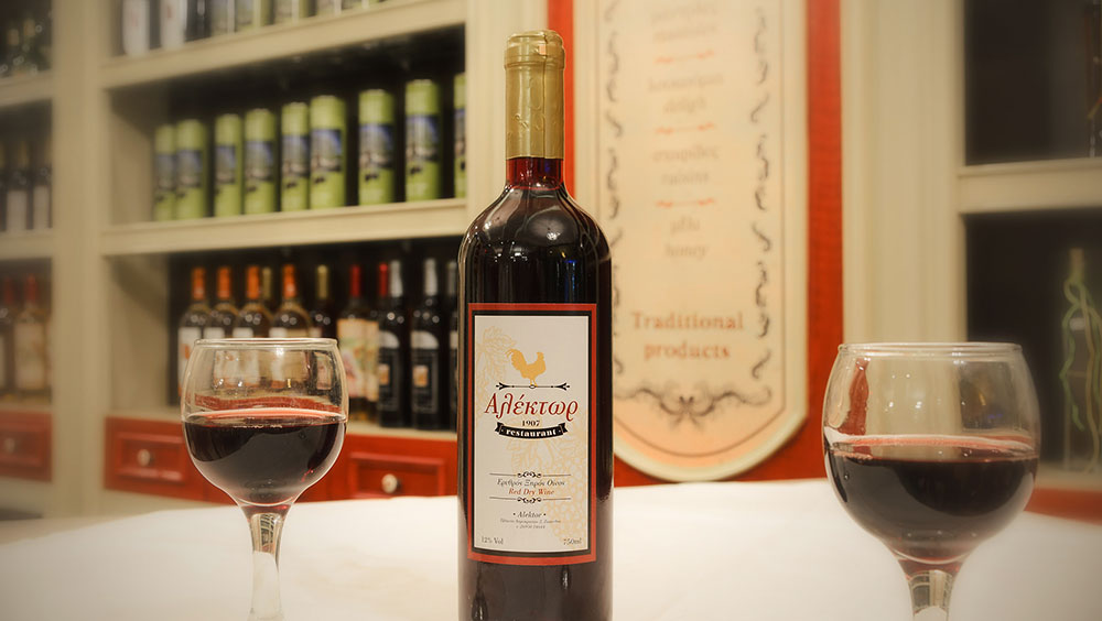 The menu of Alektor Restaurant includes options for breakfast, lunch, and dinner, while specialties include rooster in red sauce, pork shank in the oven with beer, mustard, and rosemary, local beef in red sauce, rabbit in red sauce, and fresh fish dishes.