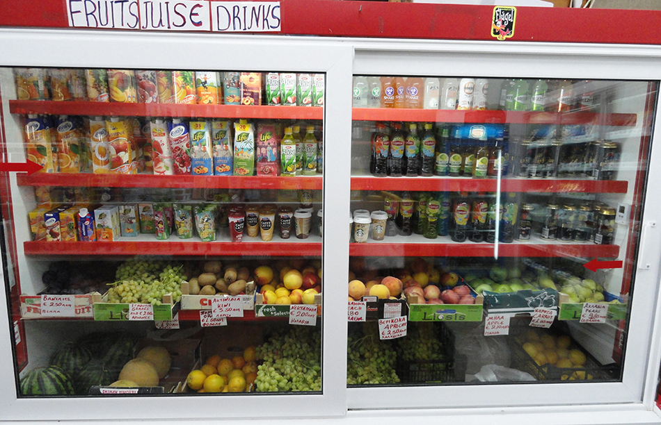 Fresh fridge products such as milk – yogurt – cheeses - meat products – beers - wine, traditional drinks and water.