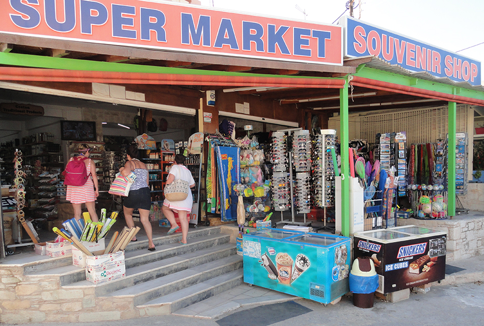 Large variety of food - household products – cleaning - sea items - sun creams – cosmetics also souvenirs and museum copies.