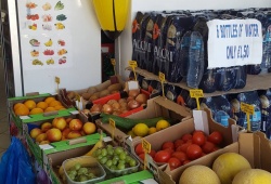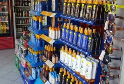 Fresh fridge products such as milk, yogurt, cheeses, beer, wine, traditional drinks, and water. Also household cleaning products, beach items, sun creams, cosmetics, and souvenirs.