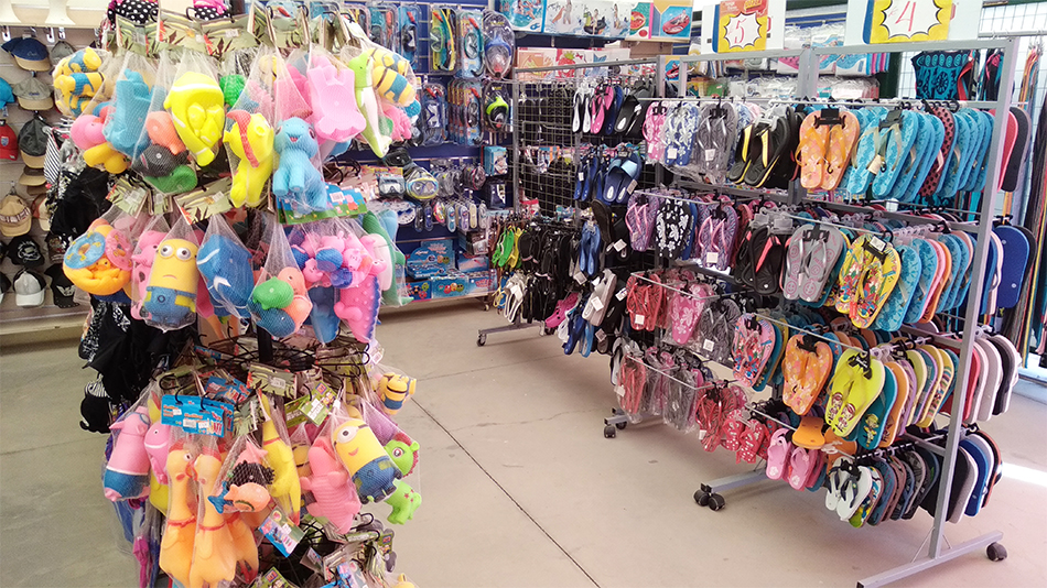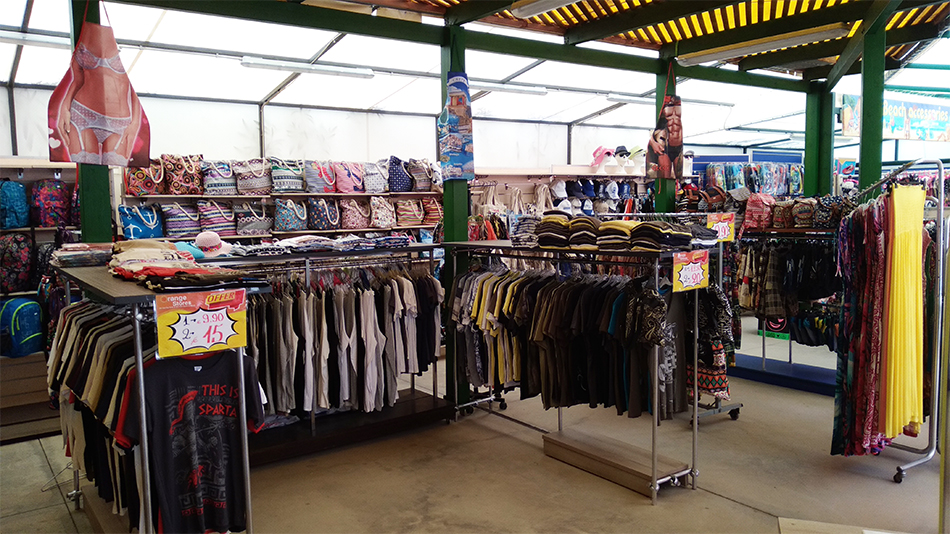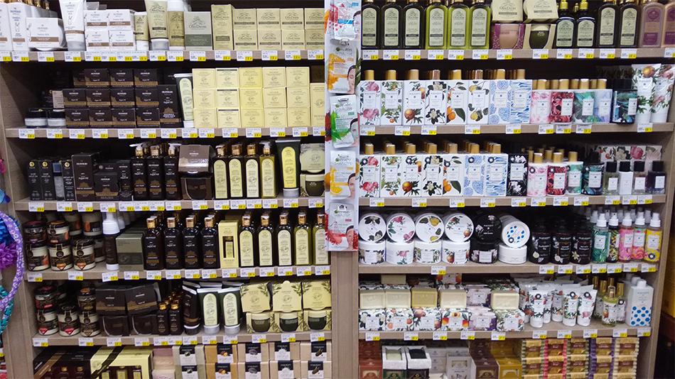 Large variety of food - household products – cleaning - sea items - sun creams – cosmetics also souvenirs and clothes.