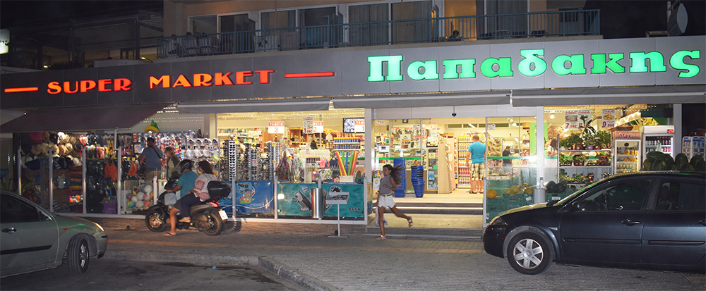 Super Market Papadakis is located in Beach Road Rethymnon, Crete, a friendly environment with very good prices and excellent quality products. Here you will find fresh vegetables – fruits – bread and other bakery products.