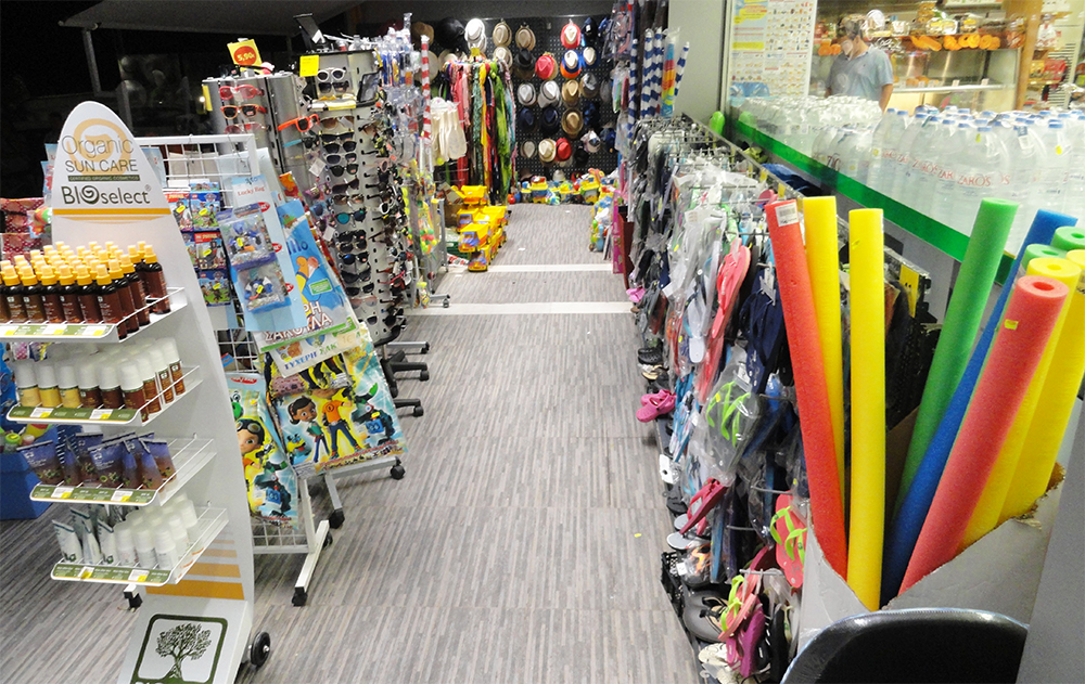 Large variety of food - household products – cleaning - sea items - sun creams – cosmetics also souvenirs and museum copies.
