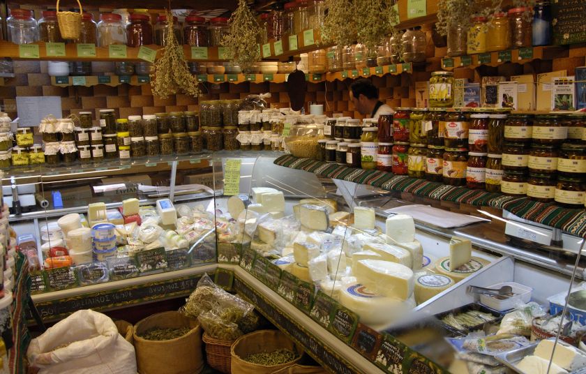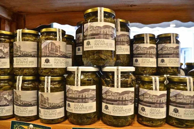 Prekas Traditional Products in Syros manufactures and labels high quality natural food products from Syros and the rest of the Cyclades islands. The store provides a wide array of products, like various types of Greek pasta, fennel pesto, pastelaries (dried figs with almonds and sesame seeds), sun-dried tomatoes, salt, caper, Syros crushed olives with fennel, herbs, but also an extensive range of traditional products and recipes from around Greece. The variety also includes local honey, many types of cheese from different farmers and locations, olive oil, salted products, as well as local cheeses like San Michalis, the top of Syros-made ones. Moreover, the store in Ermoupoli provides artichokes in olive oil, the famous Syros loukoumi, traditonal rusks, a carefully chosen selection of wines, liqueurs and spirits from the islands of the Cyclades and many more.