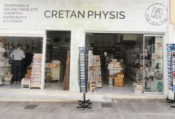 The traditional product store Cretan Physis is located in the center of Heraklion and offers the best and most quality Greek and Cretan products. You can find pure Cretan virgin olive oil, Cretan wines, Ouzo, Raki, Honey, Cretan Herbs and Spices, Sweets, Soaps, Natural Cosmetic products, souvenir, items from Cretan Folk Art, Cretan Ceramic Art , Accessories , Museum Copies and much more. The best place to shop where you will find all what is about Crete with a warm welcoming and outstanding service.