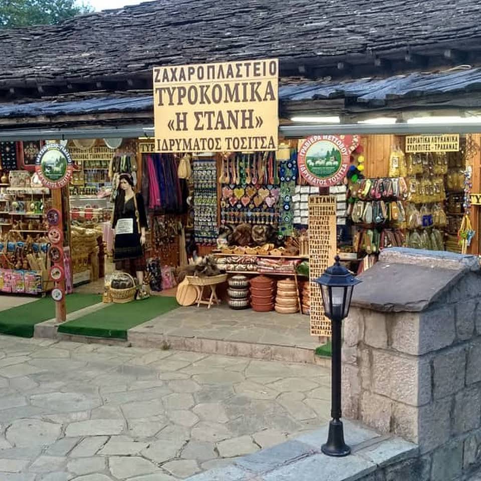 In Metsovo, there is a local shop called The Stani that sells traditional products. Numerous varieties of locally produced goods are available, including handmade knitwear, olive oil and other olive-related products, souvenirs, furs, and pottery.