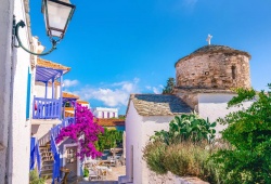 Alonissos Town, also known as Chora or Liadromia, is an enchanting village that serves as the ancient capital of Alonissos, one of Greece's most beautiful islands. Steeped in history, it was once a medieval fortress and is still remarkably well-preserved, with two entrances that lead to a car-free labyrinth of narrow alleys lined with shops, cafes, restaurants, and boutiques. Despite the massive earthquake that devastated the town in 1965, several historic churches and monuments, including the "traditional home" museum, offer a glimpse into the island's rich cultural heritage.