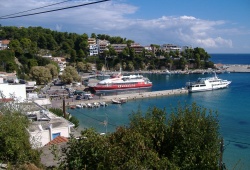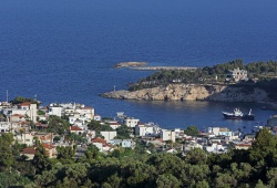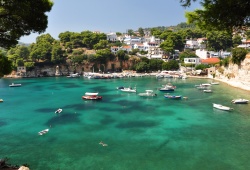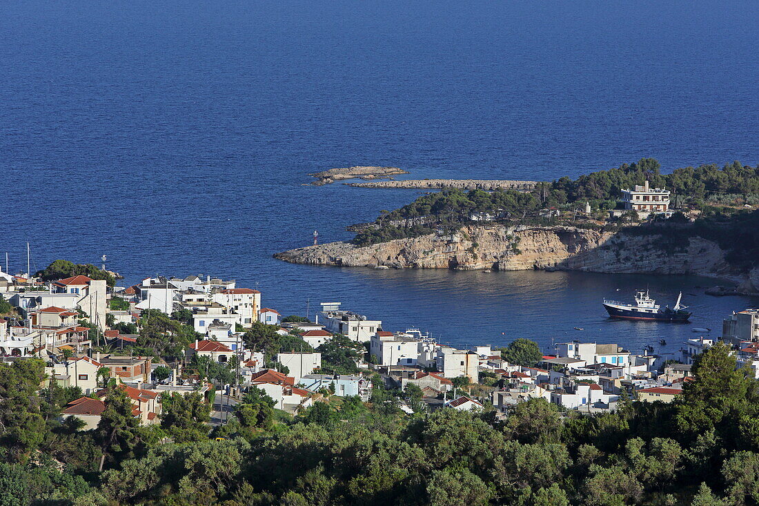 Discover Patitiri, the capital and main port of Alonissos, where the largest concentration of locals resides. After the earthquake of 1965, the inhabitants of Chora built this picturesque village, resulting in well-maintained homes adorned with beautiful flower balconies and colorful verandas. The buildings and houses on the hillside provide for a unique beauty with narrow, whitewashed streets and stairs that create a charming atmosphere. The little harbor is surrounded by stunning emerald waters and illuminated rocky marble formations at night. The entire village is cocooned by a dense pine forest, providing a tranquil environment. With taverns and cafes lining the sandy beach on the seafront, Patitiri is equipped with necessary public services such as the post office and health center. Explore the two main streets from the harbor and discover a variety of supermarkets, bakeries, pastry houses, and local shops. Experience the untouched natural environment that Patitiri has managed to preserve while still welcoming tourism in a peaceful and serene atmosphere.