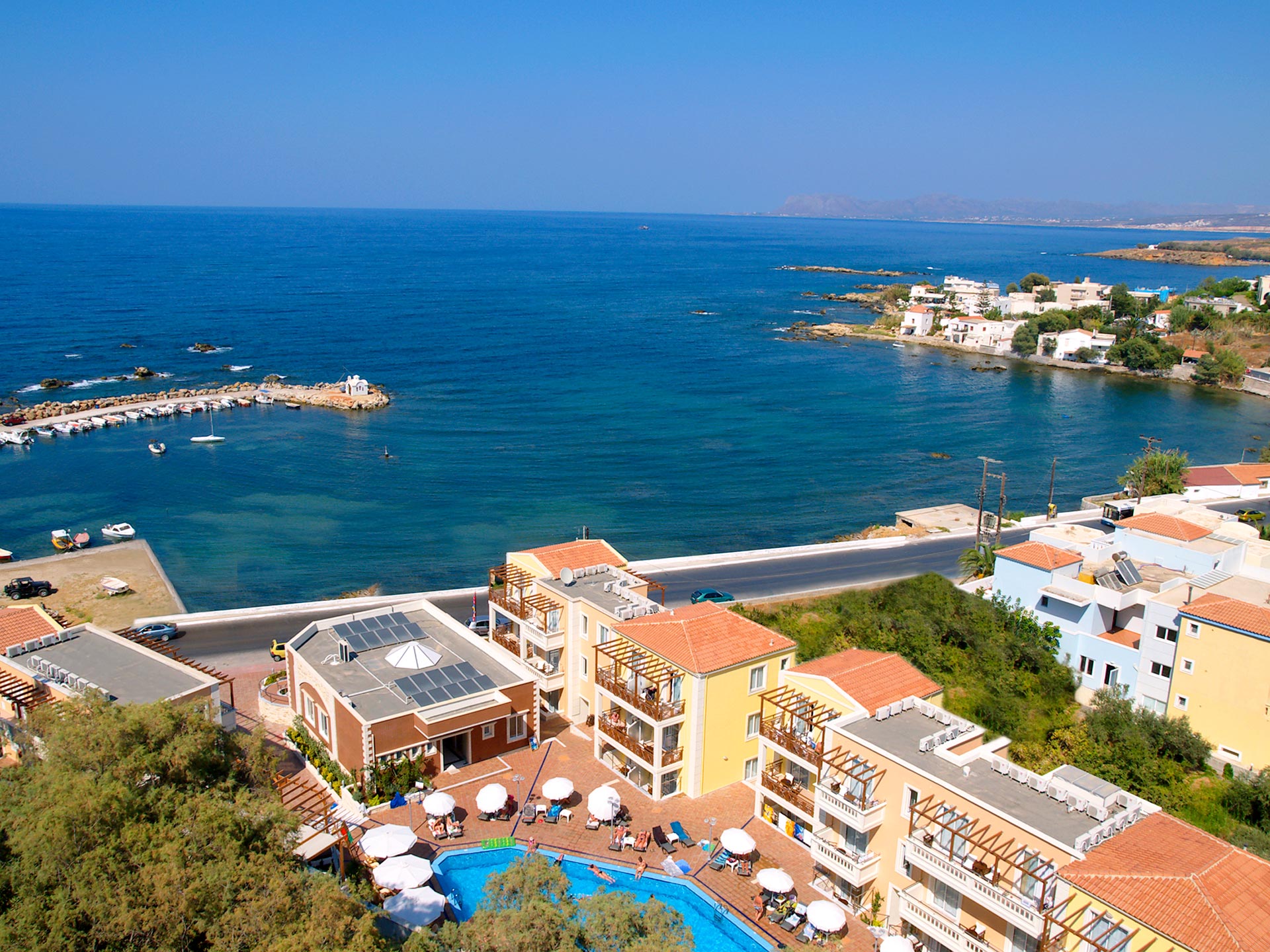 Explore Kalamaki, a beautiful area located in Chania of Crete along the stunning coast. Nestled between the village of Kato Galatas and the Holy Apostles areas in the east, Kalamaki boasts a vibrant waterfront with hotels, top-notch restaurants, and cafes. Take a dip in the crystal-clear waters, or simply relax on the beach and enjoy the scenery. Kato Galatas is just 6 km west of Chania, offering easy access to Glaros Beach, the westernmost of the four beaches in the wider Agios Apostles area. A short distance to the west of Kalamaki starts a long stretch of beautiful beach, perfect for swimming and dotted with cafes, bars, hotels, and shops. If you don't have a rental car, don't worry - the coastal road of Kalamaki has a bus that runs to both Chania and the neighboring towns of Agia Marina and Platanias. Book your trip to Kalamaki today and experience the best of Crete's coast.