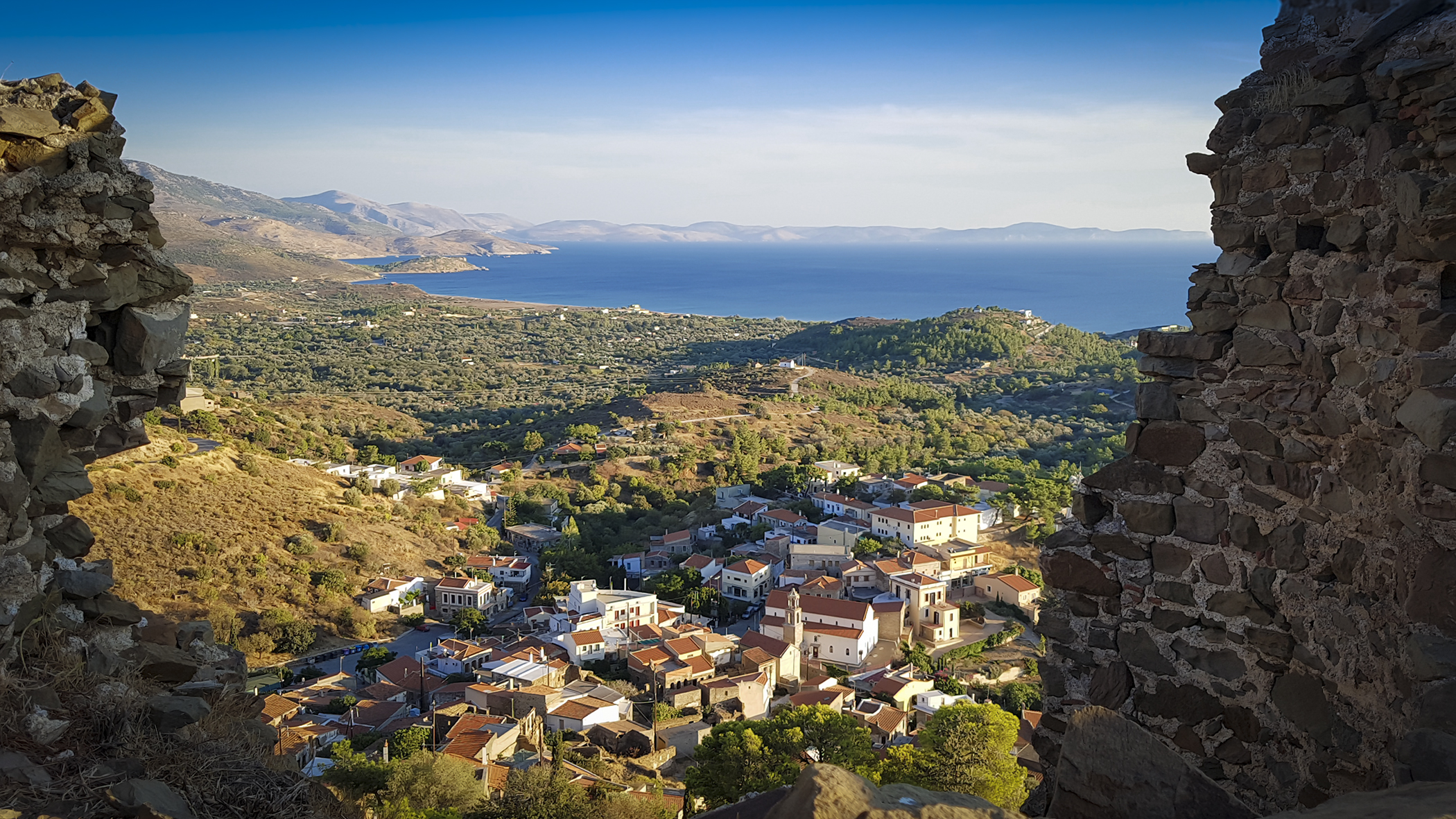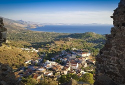 Volissos village is located on the northwestern coast of Chios Island. It is easy to get there with a car rental from Chios Town; you just follow signs to “Volissos,” which will take you in a northwestern direction. You may arrange a private transfer to reach Volissos without hassle and let the driver take you there. The cheapest way to get there is by bus transportation. If you are arriving at the airport, take the bus to Chios Town and then change buses to reach Volissos. The whole journey lasts over an hour.