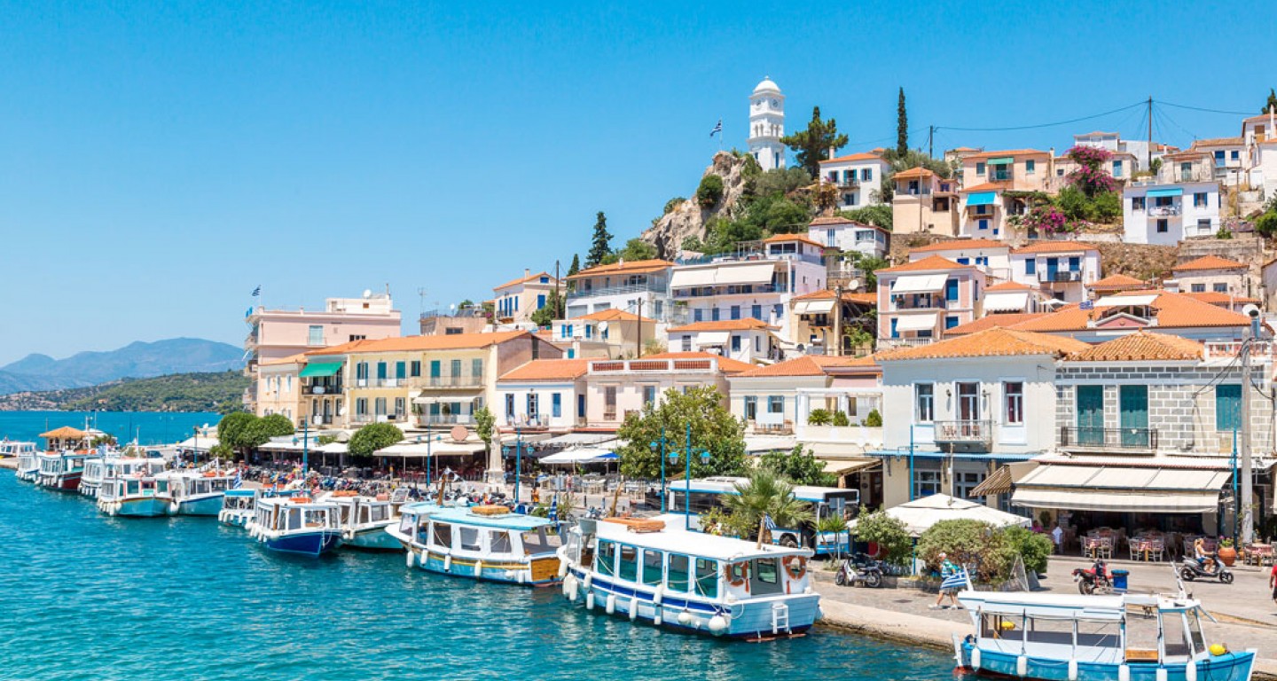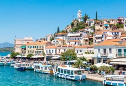 Explore Poros Town, the enchanting capital and harbor of the namesake island known for its neoclassical architecture and charmingly narrow streets. Don't miss the iconic Clock Tower, a towering landmark overlooking the town and drawing crowds from far and wide. Discover the island's rich history at the Archeological Museum on Korizi Square, or take a moment to appreciate the fascinating frescoes by renowned Greek painter Constantine Parthenis at the church of Agios Georgios. Along the seafront, indulge in the warm Aegean sun at the variety of cafes, taverns, and shops. Come experience the magic of Poros Town!