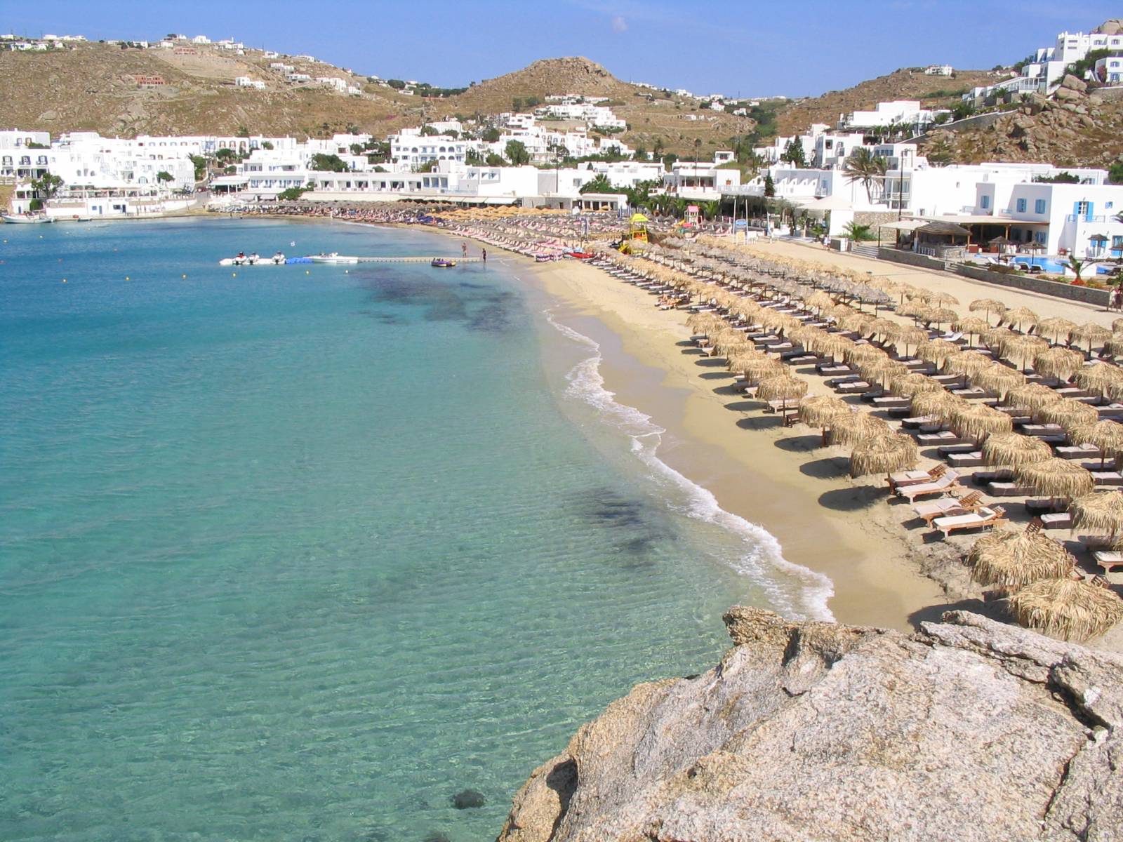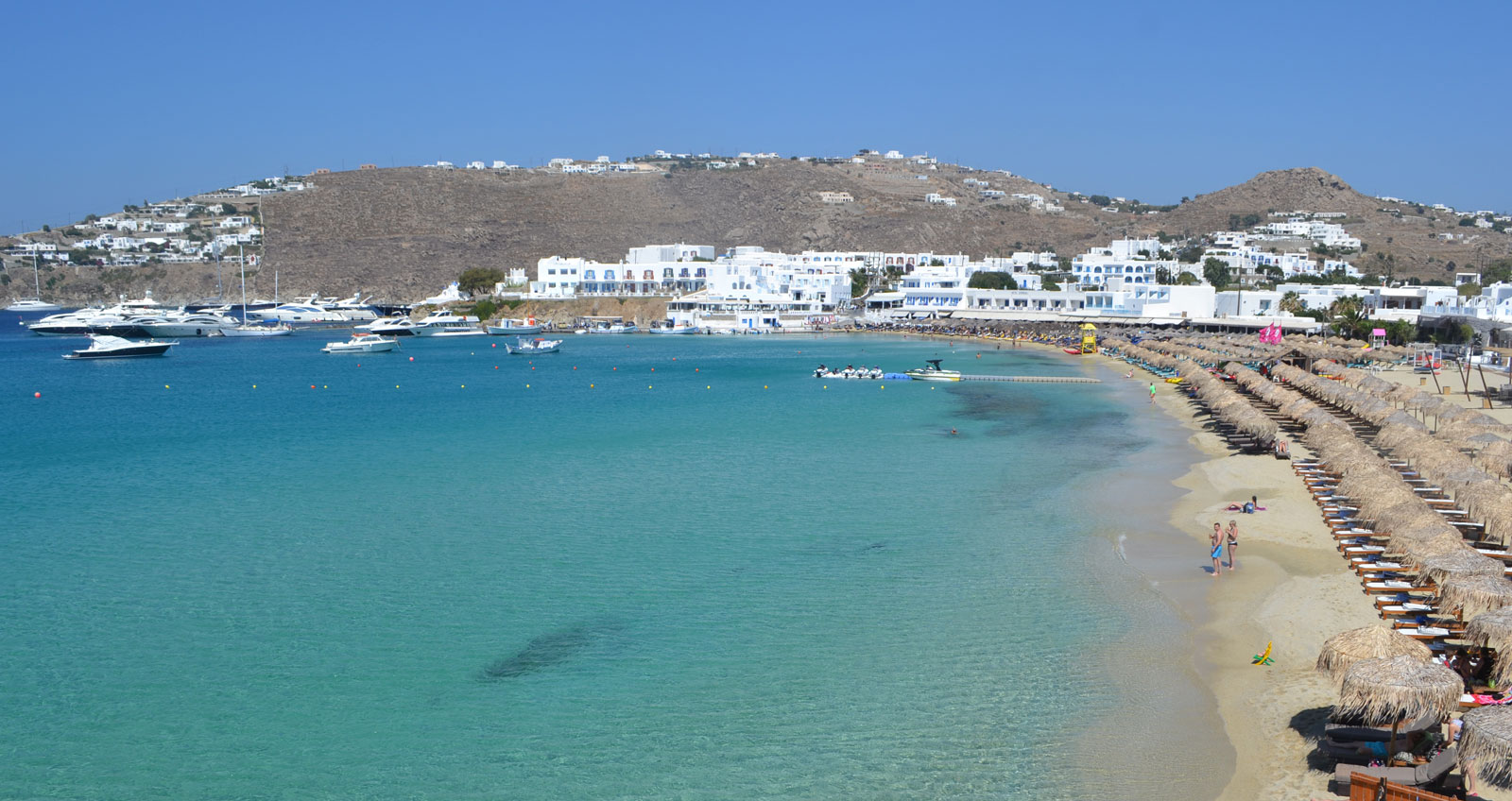 Explore Platis Gyalos in Mykonos, a charming seaside settlement renowned for its excellent tourist infrastructure. Located just 4.5 kilometers from Mykonos Town, Platis Gyalos boasts a stunning golden sand beach and top-notch facilities, making it a hub for water sport enthusiasts. From this prime destination, visitors can take either the road or excursion boats to experience the vibrant beach party scene at Mykonos' famous Paradise and Super Paradise beaches. With a wide variety of hotels and rented rooms available, as well as numerous shops, restaurants, and cafe bars, Platis Gyalos in Mykonos is the perfect destination for your next vacation.