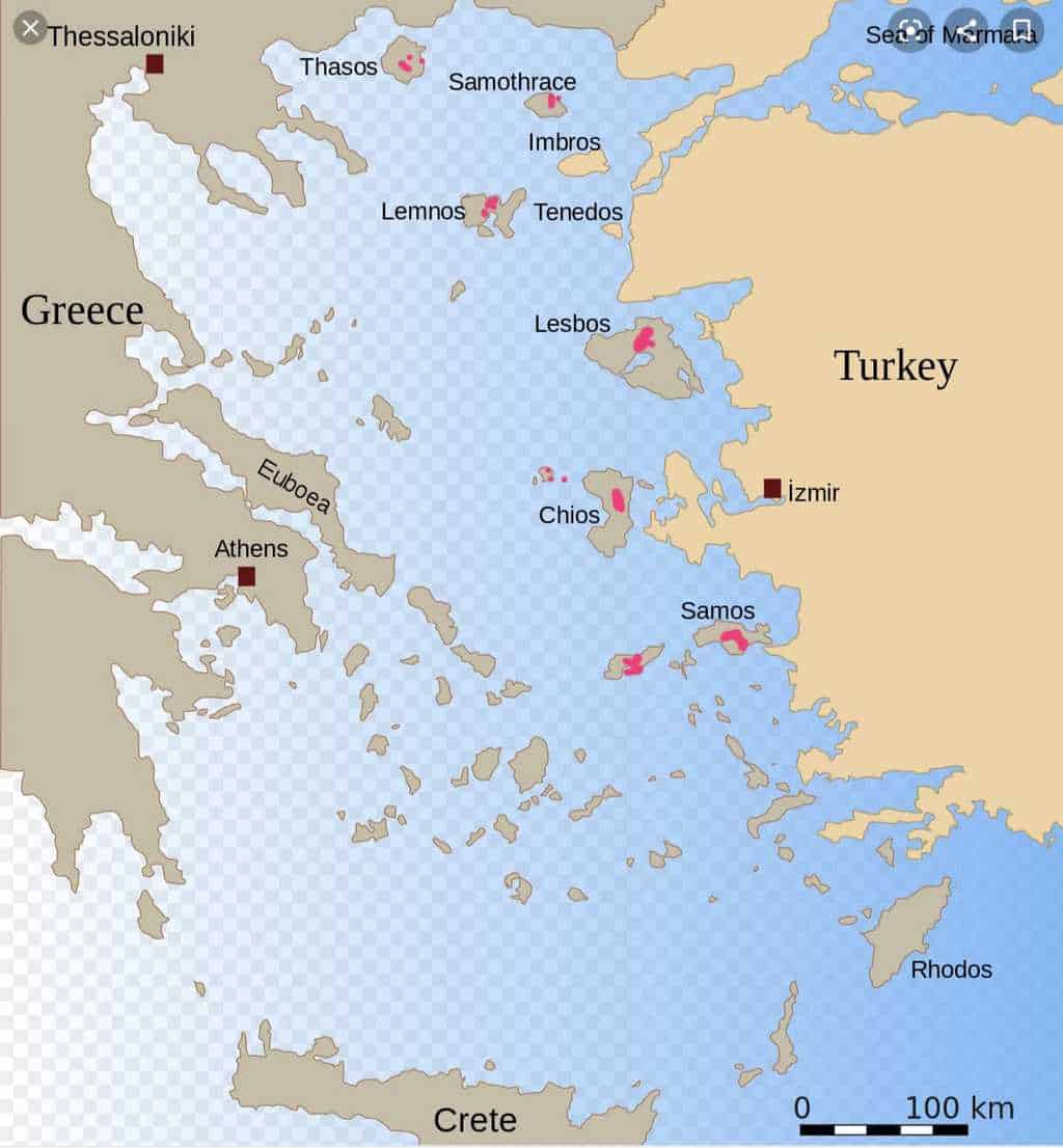 Discover the Eastern Aegean Islands in Greece, situated north of the Dodecanese and just east of the Sporades Islands. Most of the islands are located close to Turkey's border, boasting a mild climate and plenty of sunshine throughout the year. Even in winter, temperatures rarely dip below freezing. Be enchanted by the strong winds that blow in August, fondly referred to as meleemia. While tourism is less developed than on other Greek islands, each island has its own unique character. Samos, Thassos, and Ikaria are renowned for stunning beaches, Chios for its medieval villages and mastic production, Lesvos for its seaside spots, and Limnos for vast sandy coasts. Don't miss out on exploring the significant islands of the Eastern Aegean, including Chios, Ikaria, Lesvos, Limnos, Samos, and Thassos.