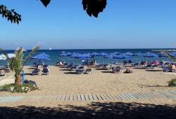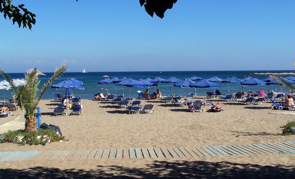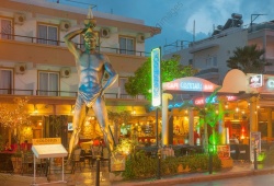 During July and August, the town center is bustling with families and small children. There are a variety of restaurants offering Chinese, Mexican, Italian, British cuisine, and traditional Greek food. Along the seafront, visitors can enjoy taverns, pubs, eateries, cafes and gift stores.