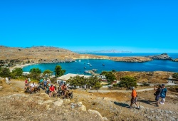 Discover the charm of Lindos, located on the eastern side of Rhodes, one of the most breathtaking places in Greece. The village boasts a fusion of Byzantine, medieval, Arab, and Rhodian architecture, featuring whitewashed buildings with flat roofs and narrow alleyways. Don't miss the iconic Lindos Acropolis, accessible by foot or donkey ride. Looking for accommodation? Choose from a range of categories to suit your needs, and indulge in local cuisine at the variety of restaurants and cafe bars in the area. Experience the best of Lindos with our expertly guided tours. Book now and make unforgettable memories.