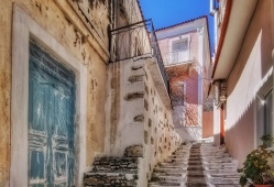 Samos Town has retained its traditional character, with picturesque houses and narrow alleys that are perfect for a leisurely stroll. The town is a hub for tourism, with a well-developed tourist industry that offers a range of facilities, accommodations, restaurants, and bars. The port of Vathy is one of the three main ports on the island, and it's surrounded by seaside taverns and cafes. As you explore the town, you'll find narrow streets winding uphill between the old houses with colorful walls and well-tended gardens.