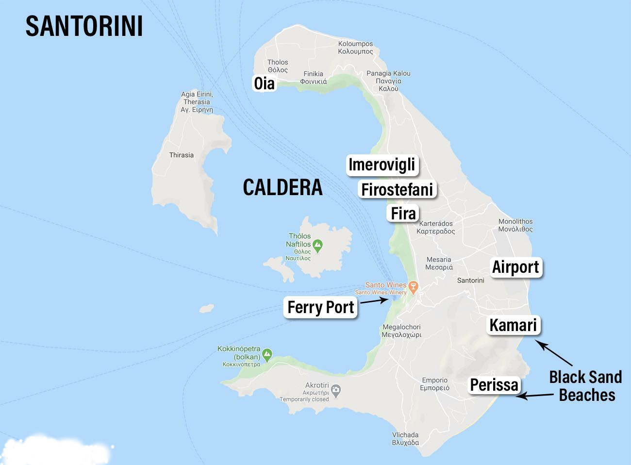 ►Explore the main regions of Santorini Island : Akrotiri, Fira, Firostefani, Imerovigli, Kamari, Megalochori, Oia, Perissa, Perivolos, Pyrgos