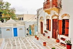 Tinos Town, the capital and port, has connections to most locations on the island. You may reach Pyrgos by bus through stops at the villages Tripotamos, Kampos, Tarampádos, Kardiani, Istérnia. The journey will take over an hour. Check the bus schedules here.