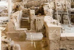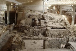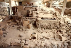 Santorini Sights & Monuments - Ancient Sight Akrotiri in Santorini, Greece, is located in the southern part of Fira and is one of the most renowned ancient sites on the island. The ancient city of Akrotiri was destroyed by a volcanic eruption nearly 35 centuries ago. Recent excavations uncovered traces of the Minoan civilization, revealing a two-story building with well-preserved frescoes, kitchenware, and household items beneath a layer of ash. Interestingly, human remains were never found, leading scientists to believe the city's inhabitants had evacuated before the disaster. The wall frescoes showcase colorful depictions from Greek mythology and the Olympian gods. The site also features the Temple of Apollo, the Roman Theatre, which was a meeting place for authorities, and Christian churches converted from pagan temples. The stunning mix of Byzantine, Roman, and Greek cultures is evident in the architecture and art of the time. Visit Ancient Sight Akrotiri in Santorini, Greece, to immerse yourself in the rich history of this incredible location.