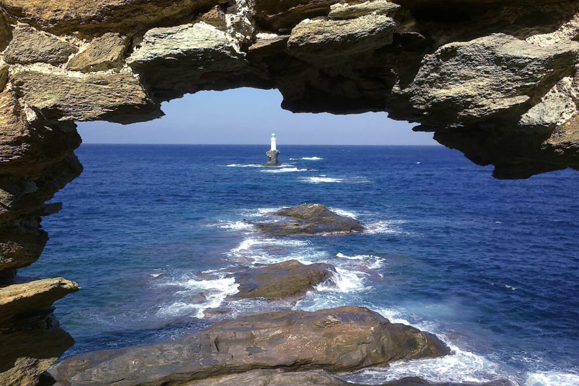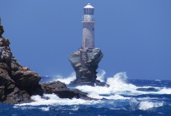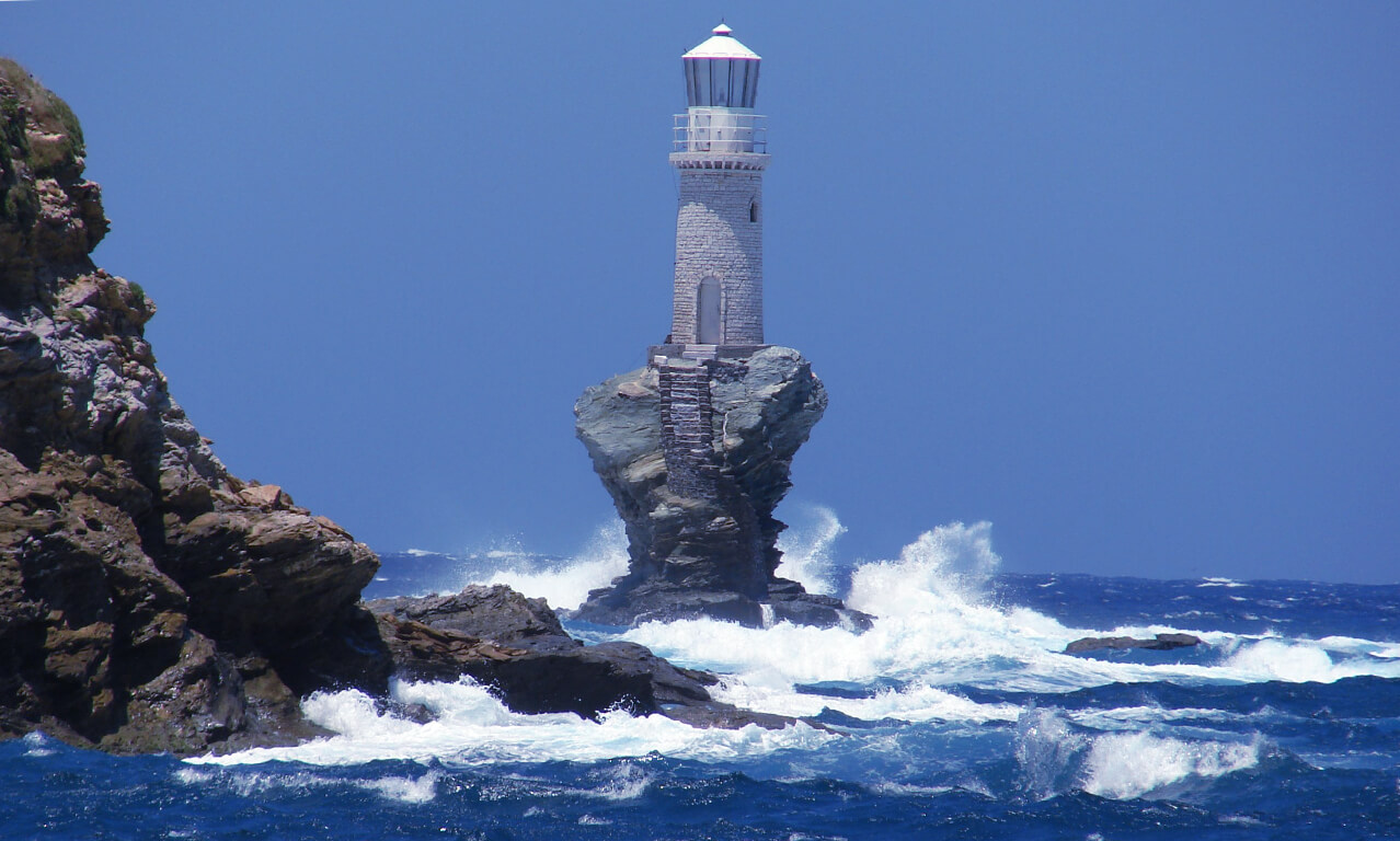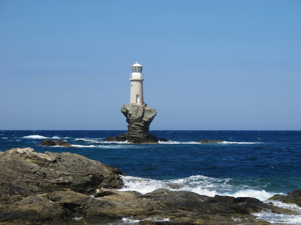 Andros Monuments - The Tourlitis Lighthouse in Andros, Greece is a unique sight to behold. Situated on a rock in the sea at the entrance of Hora's harbour, this lighthouse is the only one of its kind in Greece. Originally built in 1897, it was unfortunately destroyed in World War II by German bombings. However, thanks to the Goulandris family's efforts and expenses, it was reconstructed in 1996 using stones from northern Epirus. Don't miss the chance to witness this iconic piece of Greek history on your next visit to Andros.