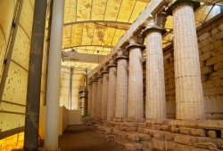 Arcadia Sights - The Temple of Apollo Epicurius in Arcadia, Peloponnese is a renowned sanctuary dedicated to the gods of healing and the sun, constructed during the 5th century B.C. in the secluded heights of the Arcadian mountains. This columned temple boasts the oldest Corinthian capital ever discovered and merges the archaic style with the tranquility of the doric style, along with some audacious architectural features.