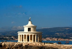 Kefalonia Sights - The St. Theodoroi Lighthouse in Kefalonia, Greece sits on a peninsula near the charming village of Argostoli and serves as a stunning attraction for visitors. The lighthouse, constructed in 1828 by British administrator Charles Napier, boasts a circular shape with 20 impressive columns and a tower that reaches 8 meters in height. With a focal plane of 11 meters, this lighthouse features a distinct Doric architectural style that adds to its allure. Come explore the beauty and history of the St. Theodoroi Lighthouse in Kefalonia, Greece.