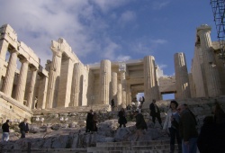 Athens Sights & Monuments - As you enter the Acropolis of Athens, you'll be greeted by the strikingly well-preserved Propylaea monument. Constructed immediately after the Parthenon, it's a must-see for visitors seeking an authentic glimpse into Greece's ancient history. The Propylaea monument in Athens boasts a prime location on the corner of the path leading to the complex, offering an impressive view for all who take the time to explore it. Featuring awe-inspiring columns that gradually reveal their beauty to visitors, the Propylaea is a breathtaking composition that's sure to leave a lasting impression. While partially destroyed like many of the Acropolis' buildings, the Propylaea has undergone multiple restorations over the years to preserve its splendor for modern tourists. Don't miss your chance to witness this marvel of ancient architecture in person during your visit to Athens, Greece.