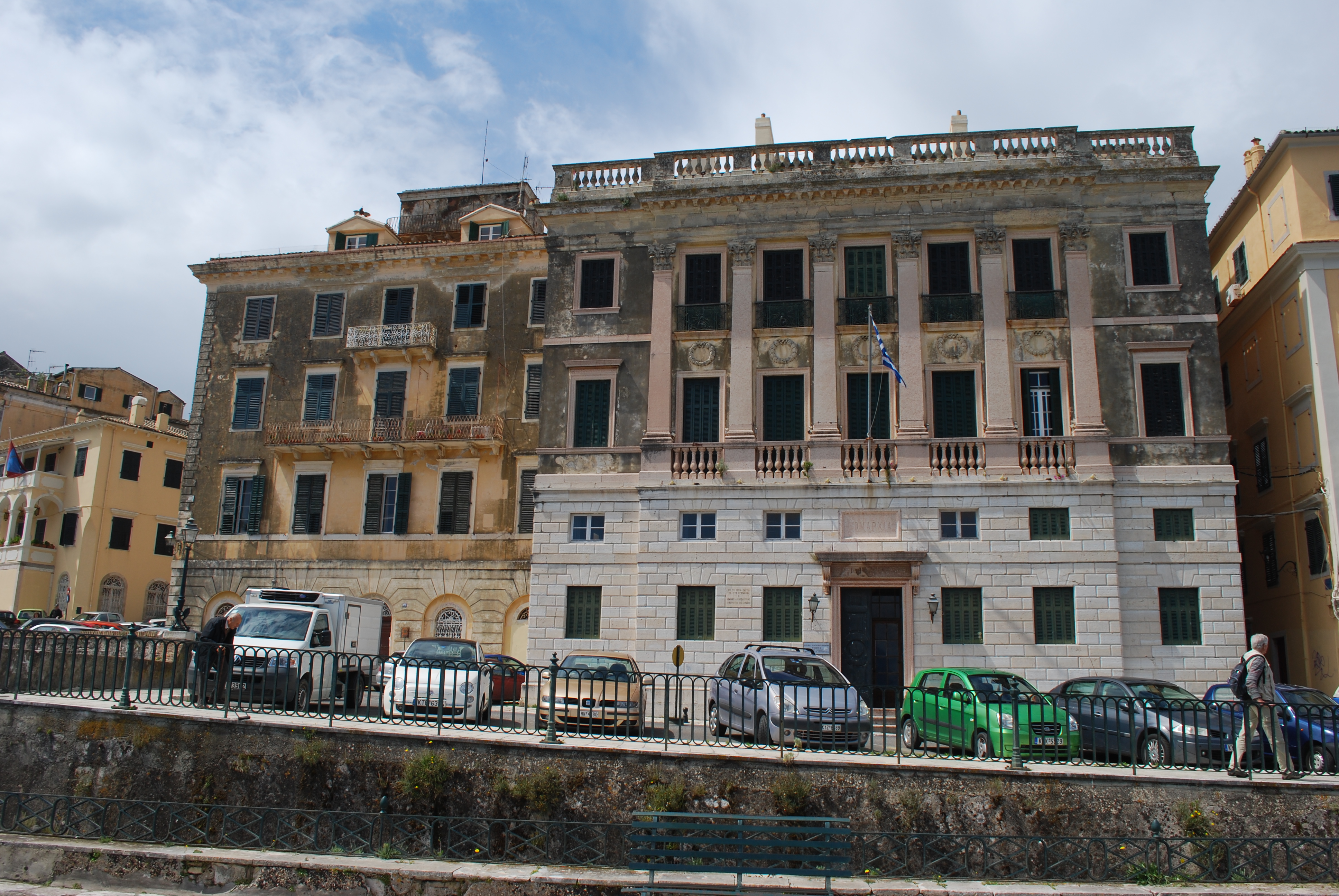 Corfu Sights & Monuments - The Kapodistrias Mansion in Corfu, Greece is a must-see attraction for history buffs. Originally built in 1840 by architect Ioannis Chronis, this impressive building was the former residence of the president of the Ionian Senate during the Ionian State period. After Greece was unified with the Ionian Islands, the Prefecture took up residence in the mansion. During WWII, the Italian Military Offices occupied the building, and today it is home to the Department of Foreign Languages, Translation, and Interpretation at the Ionian University. Though not a museum, the mansion's rich history is a testament to the cultural significance of Corfu Old Town.
