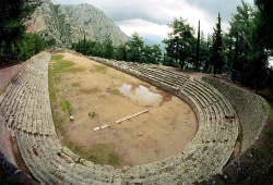 Delphi Sights & Monuments - Located beyond the sacred way, high up on a hill in Delphi, Greece, is the impressive ancient stadium of Delphi. This ancient stadium, which dates back to the 5th century B.C., is renowned as one of the most famous in all of Greece. Over the centuries, it underwent several remodels, with its present form being acquired in the 2nd century A.D., thanks to the funding of Herodus Atticus, who financed the construction of stone seating and an arched entrance. With a seating capacity of around 6,500 spectators, the stadium was primarily used for athletic events and music festivals during the Pythian and Panhellenic games.