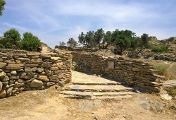 Ios Sights & Monuments - The Kambos area is home to the remarkable Ancient Skarkos, located in Ios, Greece. This extraordinary site boasts the remains of the largest Bronze Age settlement ever discovered. Fascinating discoveries unearthed during excavations can be viewed at the Archeological Museum in Chora, the island's capital. Don't miss your chance to explore the wonders of Ancient Skarkos in Ios, Greece.