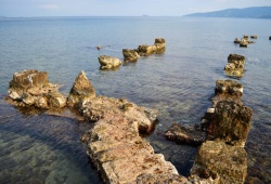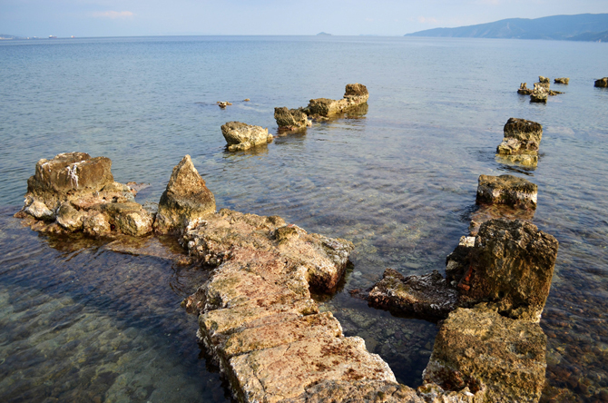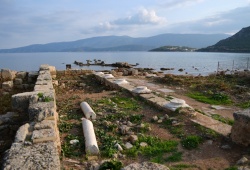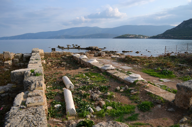 Korinthia Sights & Monuments - Kechries Port in Korinthia, Peloponnese, is a stunning natural bay that was once the primary Saronic Gulf port of the region. Today, visitors can still see remnants of the two ruined piers, which sit opposite each other. In the past, there was a building between them, but it may have been destroyed and lost to the sea after an earthquake. Interestingly, excavations at the bottom of the bay have revealed a treasure trove of artifacts, including exquisite paintings and glass/ivory opera sectile dating back to the 4th century AD. These treasures can be viewed today at the Archaeological Museum of Isthmia.