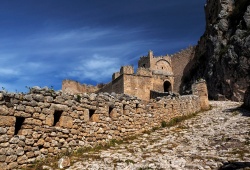 Korinthos Sights & Monuments - Acrocorinth Castle, located in Korinthos, Peloponnese, is the grandest fortress in the area and steeped in mythology. Legend has it that Helios, the god of the sun, favored this site. Its construction dates back to the reign of the Corinthian king, Sisyphus. This ancient wonder sprawls across 25 hectares at an altitude of 575 meters, showcasing remarkable fortress architecture. The polygonal walls are built to follow the natural curve of the rock and are fortified with towers and bastions. Throughout history, Acrocorinth Castle has been occupied by Romans, Franks, Venetians, and Turks, until its liberation in 1823 when it returned to the Greek State. Experience the grandeur of Acrocorinth Castle in Korinthos, Peloponnese, and immerse yourself in its rich history.