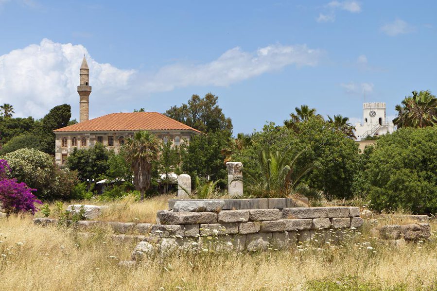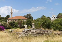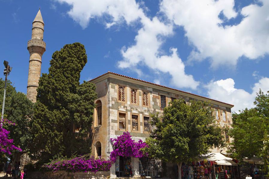 Kos Sights & Monuments - Loggia Mosque, also known as the Mosque of Gazi Hassan Pasha, is a historic mosque located in the heart of the Old Town of Kos, Greece. Built in 1786 by the admiral and commander of the islands, this rectangular two-story building was constructed with materials from the ancient city of Kos, following the traditional practices of temple and building construction of its time. Believed to have been built on the site of the Byzantine church of Agiou Georgiou, the mosque boasts a stunning 10-sided Muslim Moorish-style white marble fountain where worshippers wash their feet before entering the interior. The mosque features sixty windows that allow natural light to enter, and a towering minaret in the northwestern part adorned with the relief of the Nemean lion and a headless statue of a lion, both cut off from the temple of Hercules. Visit Loggia Mosque in Kos, Greece to experience its rich history and stunning architecture.
