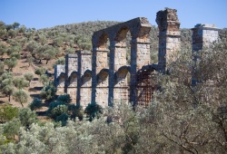 Lesvos Sights - The Roman Aqueduct, built during the 3rd century, displays the remnants of arches with a length of 100 metres and is located in the region of Moria in Lesvos. This impressive site is considered one of the most important engineering projects in the Mediterranean.