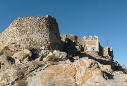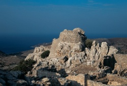 Rhodes Sights & Monuments - The Castle of the Knights in Tilos, Greece, stands tall on the hill of Agios Stefanos, overlooking the town of Megalo Chorio. This impressive structure was constructed in the 5th century by the Knights of St. John as a means of protecting the roads leading to the island's lush plains. The castle also housed a village to provide security to its residents during times of pirate invasion. Even today, visitors can see the sturdy outer defensive walls that have withstood the test of time. Come and explore the rich history of the Castle of the Knights in Tilos, Greece.