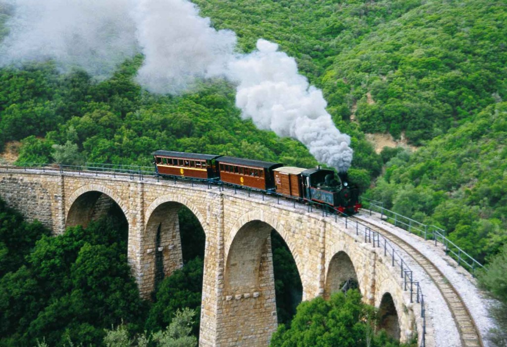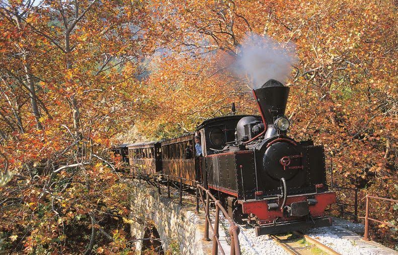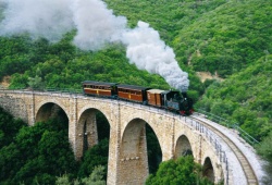 Pelion Sights & Monuments - The Mountzouris Train in Milies, Pelion, is a must-see attraction for history buffs and nature enthusiasts alike. This steam train has been in operation since 1895 and has played a pivotal role in the development of Pelion in Greece. Infrastructured by renowned Italian engineer Evaristo de Chirico, this train and its stations have even been featured in paintings by his famous surrealist son, Giorgio di Chirico. Today, the Mountzouris Train departs from Ano Lehonia village and passes through picturesque villages like Agios Athanasios, Agia Triada, Ano Gatzea, and Pinakates before reaching its final destination in Milies village. With a leisurely speed of 25 km/hour, passengers can take in stunning views of Pelion's nature and cross charming stone bridges. Each railway station also boasts unique architectural interest. Don't miss the chance to experience the historic Mountzouris Train in Milies, Pelion!
