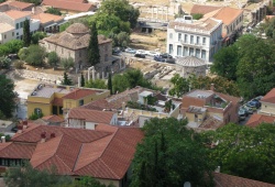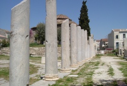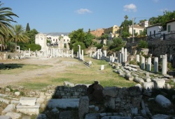 Athens Sights & Monuments - Located adjacent to the Acropolis in Athens, Greece, is the magnificent Roman Agora. This awe-inspiring structure was intentionally placed near the epicenter of pagan worship, similar to other Greek cities' capital markets. Dating back to the first century BC, the Roman Agora was generously funded by Julius Caesar Augustus and boasts a spacious rectangular courtyard encircled by an array of shops and warehouses. While tourists explore the inner courtyard adorned with Ionic columns, the complex's outer limits lead directly into Athens' bustling Monastiraki shopping district. Experience the history and grandeur of the Roman Agora in Athens, Greece.