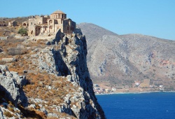 Monemvasia Sights & Monuments - Monemvasia Castle in Peloponnese is a stunning fortress that boasts an area of a large plateau, approximately 100 metres above sea level, 1 km long and up to 300 m wide. The town walls and numerous Byzantine churches still stand today, offering visitors a glimpse into its rich medieval history. This fortress was built into a rock and is only accessible by a narrow and unique road, making it almost impenetrable for barbarian raids. The name "Monemvasia," which means "one-way," adds to its charm and allure. Discover the captivating beauty of Monemvasia Castle in Peloponnese and immerse yourself in an unforgettable experience.