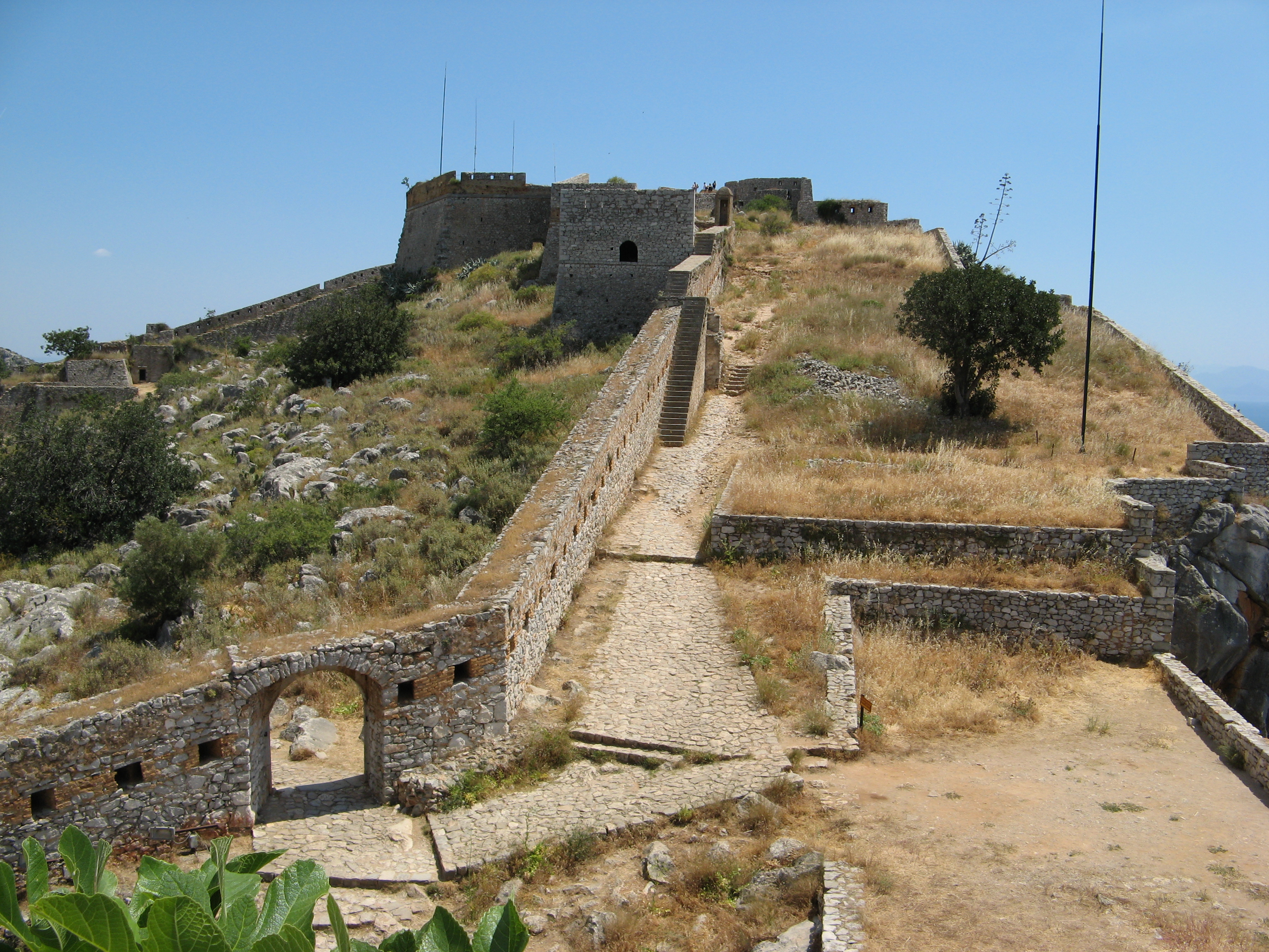 Nafplio Monuments - Palamidi Castle in Nafplio, Greece was constructed during the Venetian occupation in the early 19th century. With its eight bastions, each self-contained and connected by a single wall, Palamidi Castle was designed to withstand enemy attacks. The bastions were named after legendary ancient Greek figures, including Leonidas, Miltiades, Achilles, and Themistocles, highlighting the castle's strength and resilience. Today, Palamidi Castle in Nafplio, Greece stands as a historic landmark and popular tourist destination.
