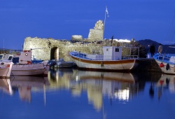 Paros Sights & Monuments - The Venetian Castle in Paros, Greece is a must-visit destination in Nasoussa. Originally built in the 15th century as a watchtower by the Venetians, this fortress played a crucial role in defending against pirate and enemy attacks, as well as serving as a front line during war. The fortress's prime location offered a clear view of the Aegean Sea, allowing for efficient surveillance. Its unique architecture made it nearly impossible for enemy ships to approach the nearby port where commercial ships docked. Today, only a portion of the fortress remains, including a half-submerged watchtower connected to land by a short path. The original second watchtower is no longer standing, but both towers had large iron gates for easy commercial transactions. The Venetian Castle of Paros is situated near charming bars and fish taverns, replacing Venetian storehouses that were once present. The fortress's rich history includes conquests by the Russians and Ottomans. Don't miss the chance to explore this iconic site in Paros.