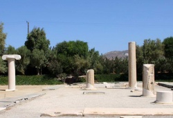 Naxos Sights & Monuments - The Temple of Dionysus in Naxos, Greece is a significant sanctuary that was dedicated to the Greek god Dionysus and potentially a female nature deity. It served the followers of the faith from the Mycenaean era in the 14th century BC to the Roman period. Situated in the fertile valley of Livadi, south of Naxos town at Iria, the temple was built to address the growing needs of the devoted, despite the challenges posed by the area's swampy terrain.