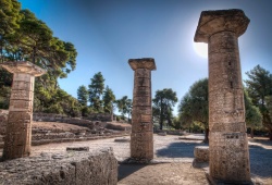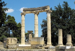 Ilias Sights & Monuments - Discover the magnificent Ancient Olympia in Peloponnese, Greece, known as one of the most significant archaeological sites not only in the region but in the entire country. This sacred site, first established in the 10th century BC, served as a place of worship for Zeus, the king of the gods. It was also home to the first Olympic Games, which began in 776 BC and took place every four years until Emperor Theodosius I banned the pagan event in 394 AD. Originally dedicated to Gaea, the goddess of the earth, Ancient Olympia later became the center of Zeus' cult, with a temple erected in his honor. Experience the birthplace of the Olympic Games at Ancient Olympia in Peloponnese, Greece.