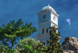 Poros Sights & Monuments - As you wander through the charming streets of Poros, Greece, the Clock Tower is sure to catch your eye. This iconic landmark stands tall and proud, overlooking the town and the sparkling blue sea beyond. With its white stone walls and red-tiled roof, the Clock Tower is a stunning example of traditional Greek architecture. As you approach, you'll hear the gentle chime of the clock, reminding you to slow down and savor the beauty of this enchanting island.