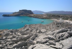 Rhodes Sights & Monuments - Nestled atop the ancient acropolis lies Feraklos Castle in Rhodes, Greece. Once a haven for pirates, the Knights of St. John claimed the castle and utilized it as a prison after ousting the buccaneers. Accessible via a footpath and steep steps, this climb to the castle's 300m elevation is a bit rugged underfoot. However, the breathtaking panoramic views of Agathi Bay and the charming village of Haraki make the trek well worth it. Keep in mind the entry point to the castle, which can be easy to miss upon your return. Though the fortress walls are the only significant structure remaining, narrow paths amidst the overgrown vegetation offer excellent viewpoints of Agathi Beach and Haraki. As the final bastion to fall to the Ottoman Empire, Feraklos Castle holds a significant place in Rhodes' history.