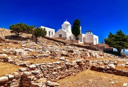 Sifnos Sights & Monuments - Discover the mysteries and rich heritage of Ancient Agios Andreas in Sifnos, Greece; a beloved archaeological destination that spans 10,000 square meters atop the plateau of the Agios Andreas hill. Unearthed during excavations were remnants of the Mycenaean citadel walls, as well as the city's infrastructure including buildings, roads, and water drainage systems. Experience the preserved artifacts firsthand at the exhibition hall of Agios Andreas.